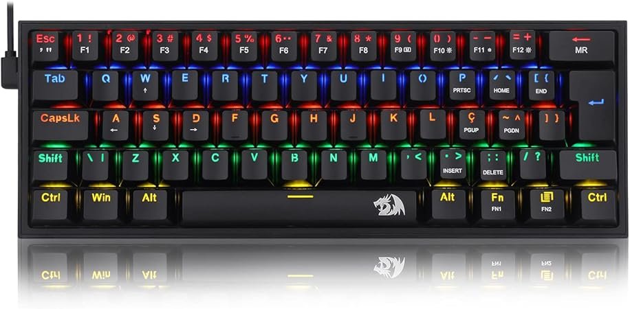 Teclado Mecanico Gamer Fizz Rainbow Preto Switch Azul Redragon PC